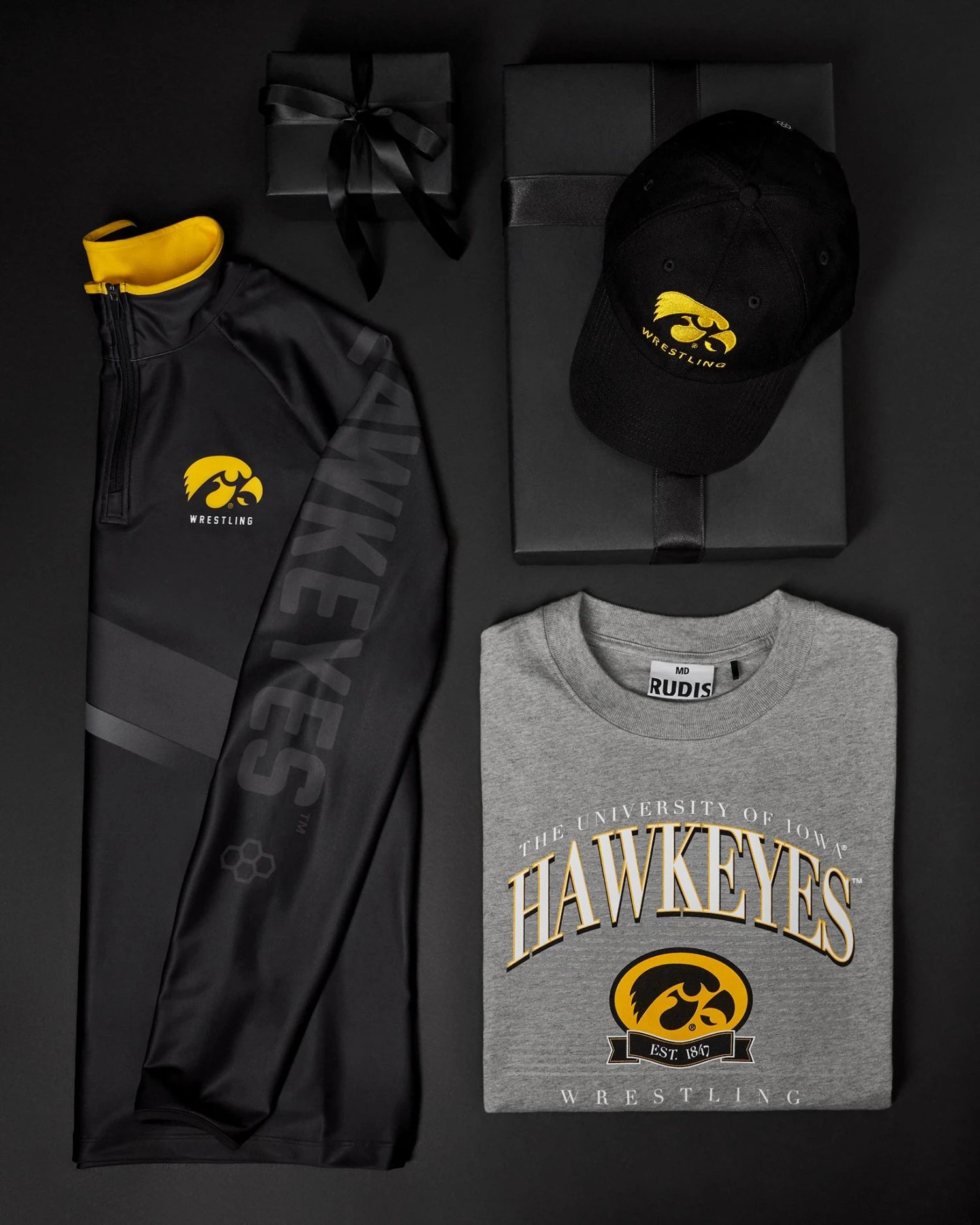 Rep the black and gold with the ultimate Iowa Gift Bundle, crafted for true Hawkeye fans and athletes. This set includes the Iowa Throwback Heavyweight T-Shirt, a classic design celebrating Iowa’s wrestling legacy with premium comfort; the Iowa Hawkeyes Sublimated Elite 1/4 Zip, combining sleek, moisture-wicking performance with bold Iowa graphics; and the IOWA Unstructured Hat, a relaxed-fit cap showcasing iconic Hawkeye branding. Perfect for training, game day, or casual wear, this bundle is a must-have for anyone proud to support Iowa wrestling.